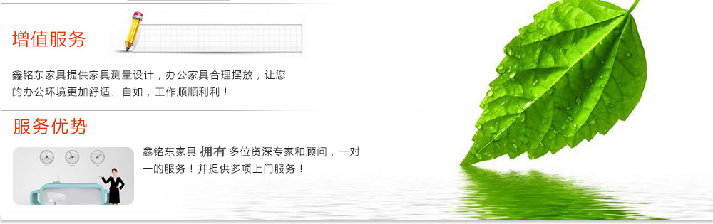 深圳市鑫銘東家具有限公司專業(yè)銷售各類辦公家具!產品涉及多種系列,如:班臺、班椅、屏風、會議桌、會議椅、辦公沙發(fā)、茶幾、辦公桌、文件柜、電腦桌椅、各式餐臺、餐椅、書柜等辦公家具。 鑫銘東家具擁有一批優(yōu)秀的家具設計、生產及營銷的專業(yè)人士和高素質的管理隊伍。銘東家具以"先難后易"之戰(zhàn)略,在產品結構、產品質量及服務水平方面,均推陳出新,力求完善,精益求精。使我們的產品質量保持在國內外家具潮流的先進水平,力求滿足客戶的特殊需求。鑫銘東家具多年來致力于環(huán)保、實用家具的設計與開發(fā),集生產、銷售、服務于一體。本著"以人為本"的設計理念,大量開發(fā)符合人體工程學的各種產品,以"誠信為本"的質量方針,真材實料,認認真真做產品,實實在在做人。鑫銘東家具更致力于創(chuàng)造"零維修率"的制造境界,實現"沒有維修的服務才是最好服務"的口號》了解更多